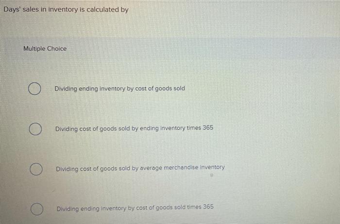 Solved Days Sales In Inventory Is Calculated By Multiple Chegg Com